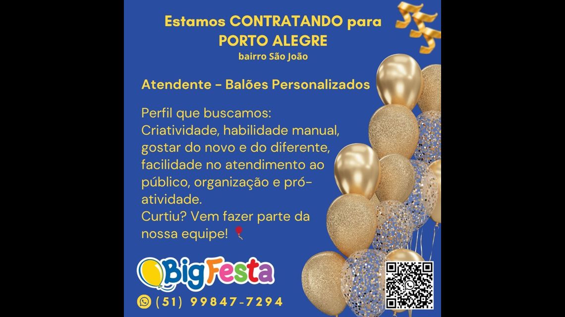 Estamos em busca de um(a) atendente para o setor de Balões Personalizados para integrar nossa equipe na loja matriz.